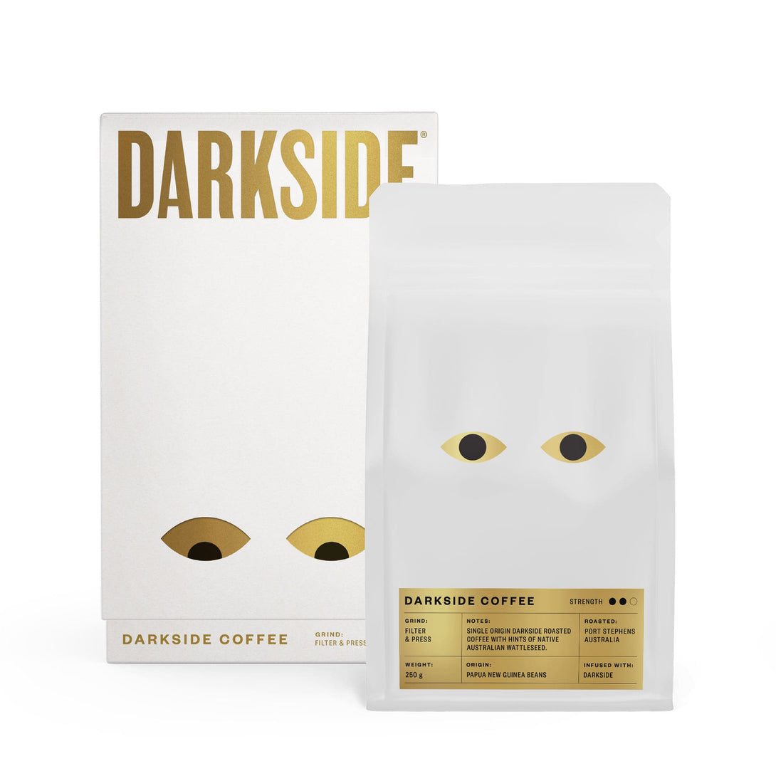 We infuse Papua New Guinean beans with Darkside Liqueur before gently roasting to create a unique brew with hints of native wattleseed, vanilla, cinnamon and dark caramel.